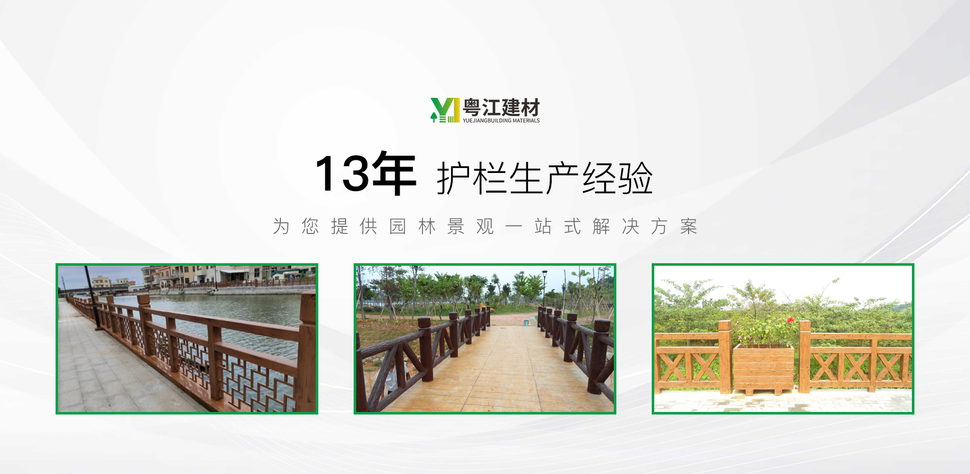 江門市粵江建材有限公司隸屬于中山市鴻文園林景觀工程有限公司(前身為成立于2010年——中山市三圣園林景觀工程有限公司,2021年更名為中山市鴻文園林景觀工程有限公司)旗下子公司,成立于2022年,公司坐落于粵港澳大灣區(qū)重要節(jié)點(diǎn)城市—鶴山市,占地10余畝,現(xiàn)有員工50余人。是一家專業(yè)從事園林護(hù)欄設(shè)計(jì)及施工一體化的園林景觀工程公司,公司擁有仿木、仿石、仿竹、鑄造石四大系列產(chǎn)品,主營產(chǎn)品有:河道護(hù)欄、橋梁護(hù)欄、仿木護(hù)欄、仿漢白玉護(hù)欄、仿石護(hù)欄、鑄造石護(hù)欄、仿竹護(hù)欄、仿木護(hù)岸樁、仿木花架、仿木花箱、仿木地板、組合護(hù)欄、棧橋等景觀產(chǎn)品。產(chǎn)品涉及水利建設(shè)、景區(qū)建設(shè)、城鎮(zhèn)園林建設(shè)、小區(qū)美化建設(shè)、新農(nóng)村改造等景觀裝飾。